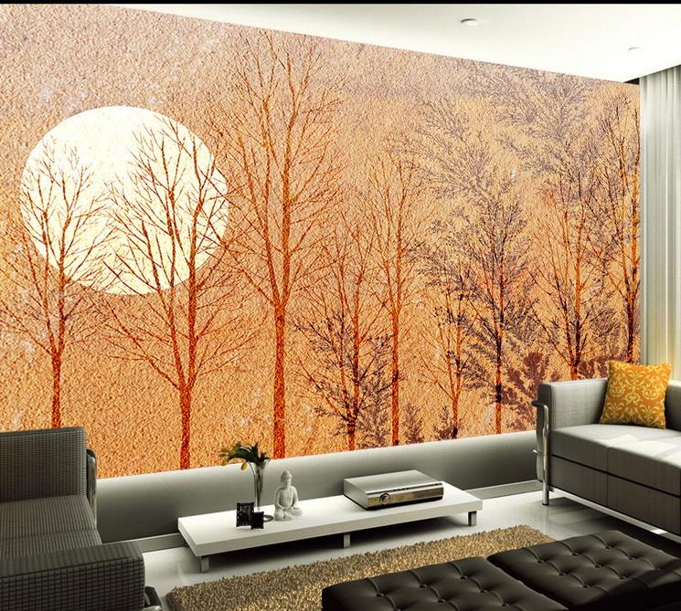 درختان با زمینه کرمی آسمان و ماه