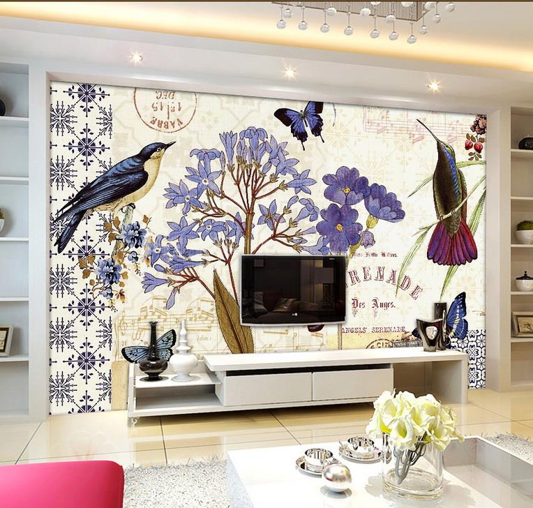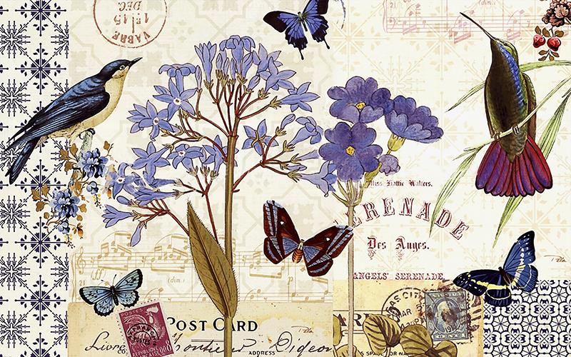 پرنده ها و گلهای بنفش