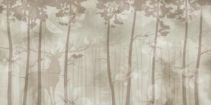 تنه درختان و سایه گوزن ها