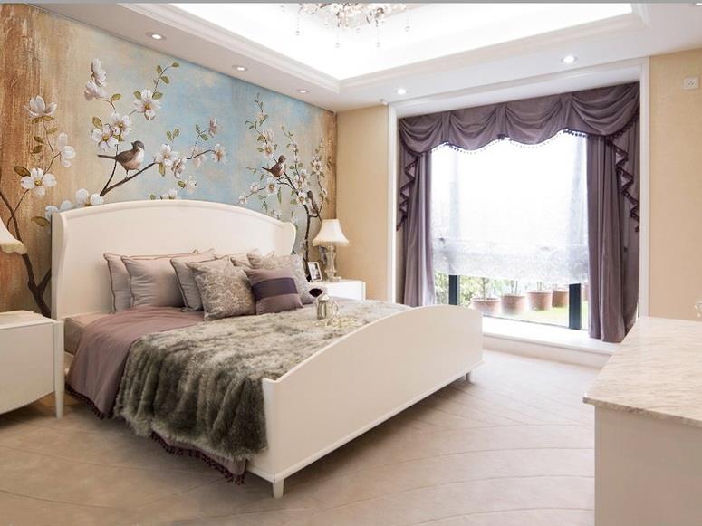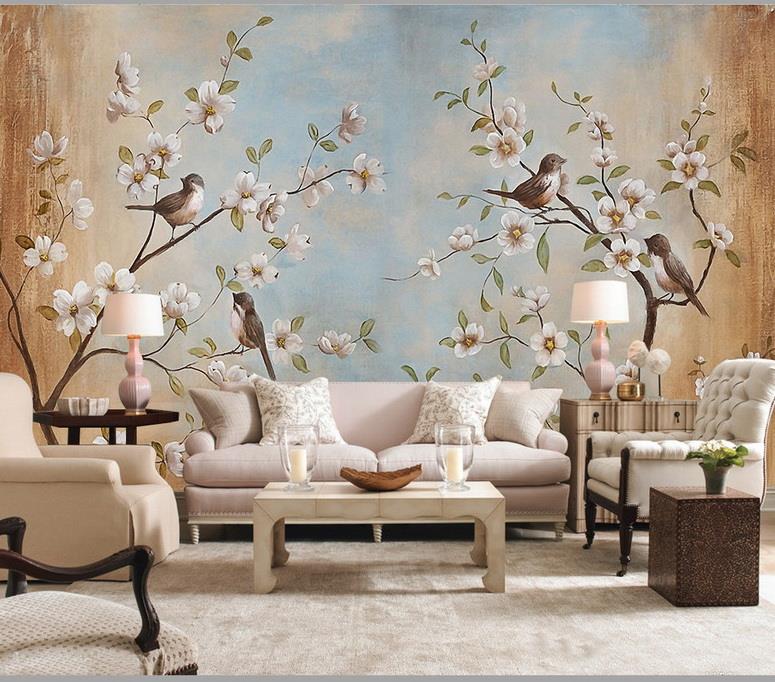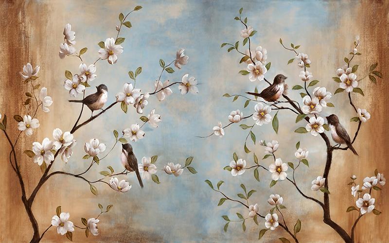 گلهای پنج پر سفید و پرندگان