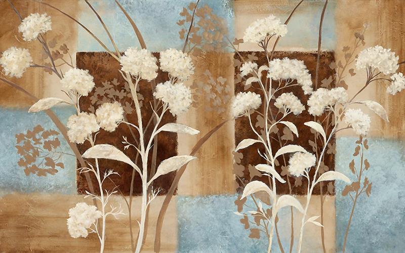گلهای پنبه ای با زمینه شطرنجی قهوه ای