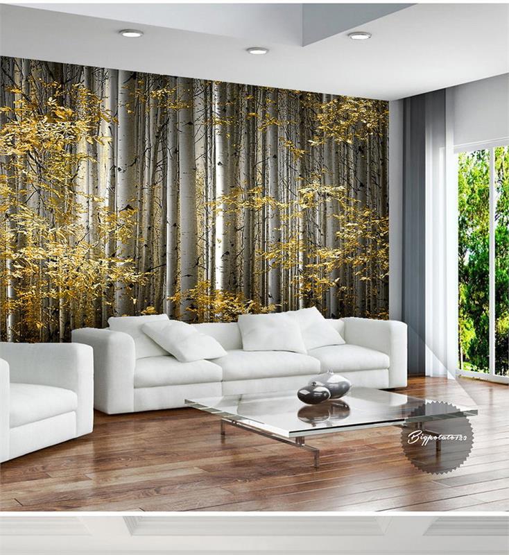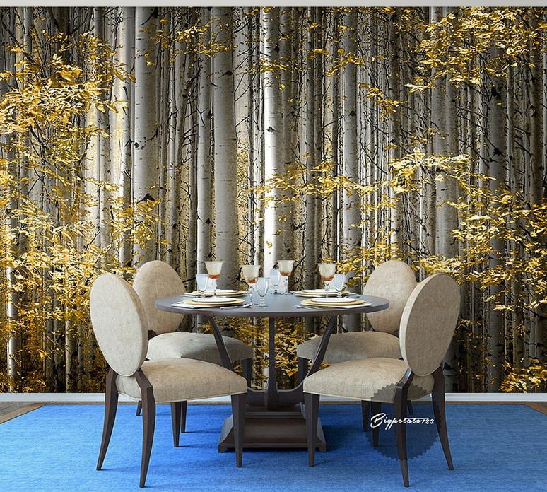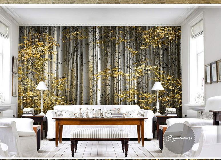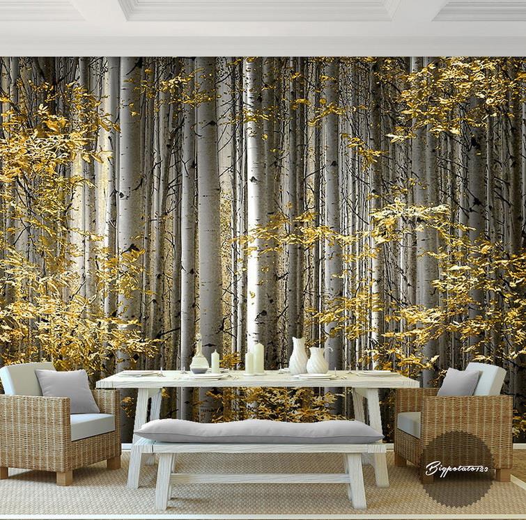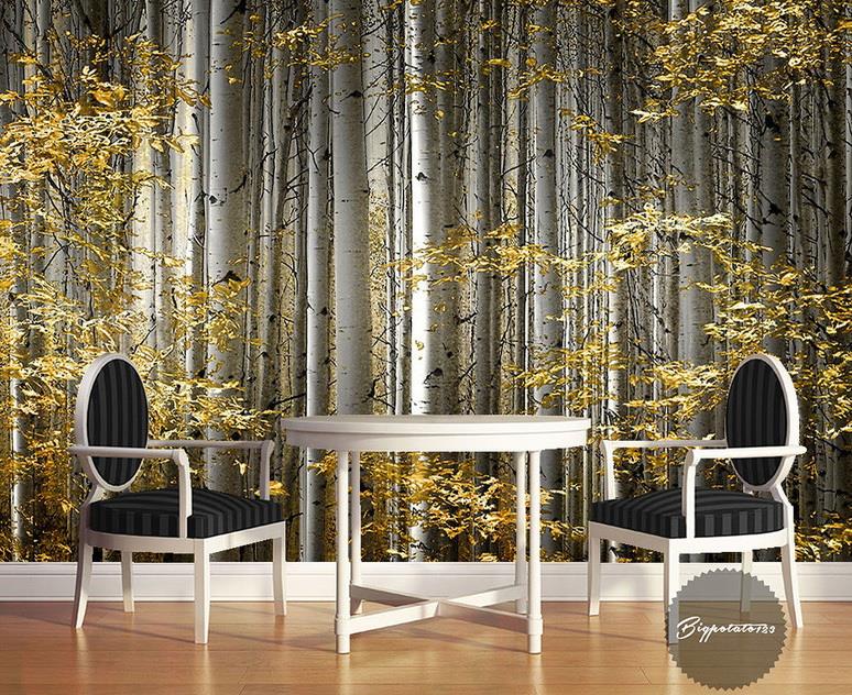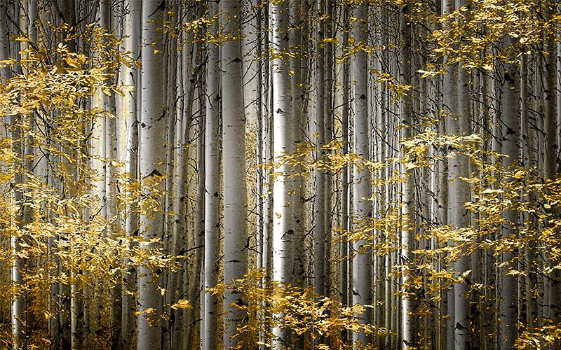 تنه درختان با برگهای طلایی