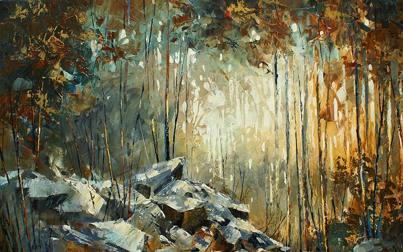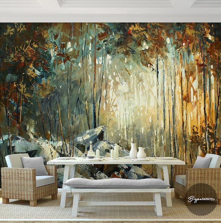 تنه درختان با سنگ ها