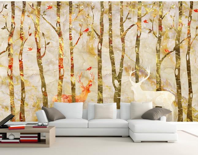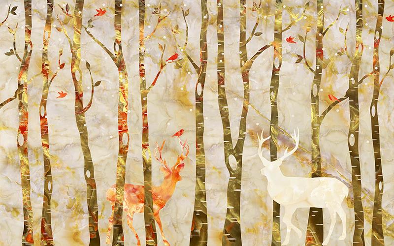 تنه درختان و گوزن ها