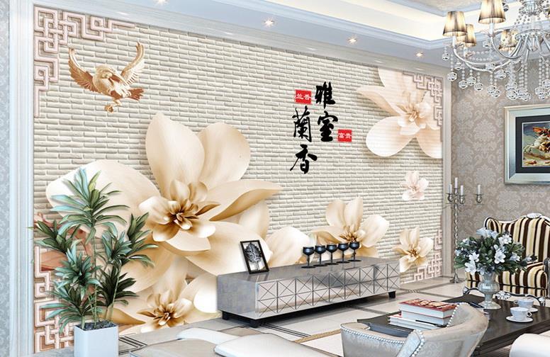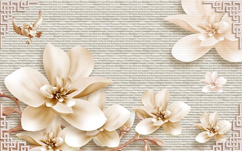 گلهای کرمی رنگ با زمینه دیوار آجری