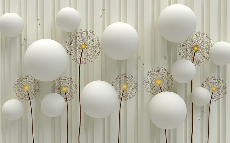 گل های سه بعدی صورتی و سفید با دایره های توخالی طلایی