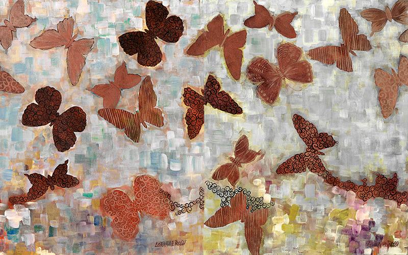 گلهای سفید نگین دار و پروانه ها با زمینه رز صورتی