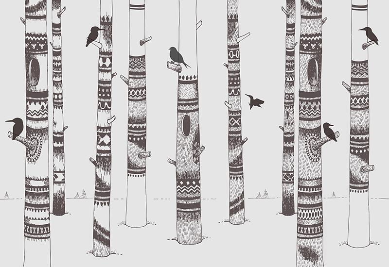 تنه درختان با نمادهای سرخپوستی