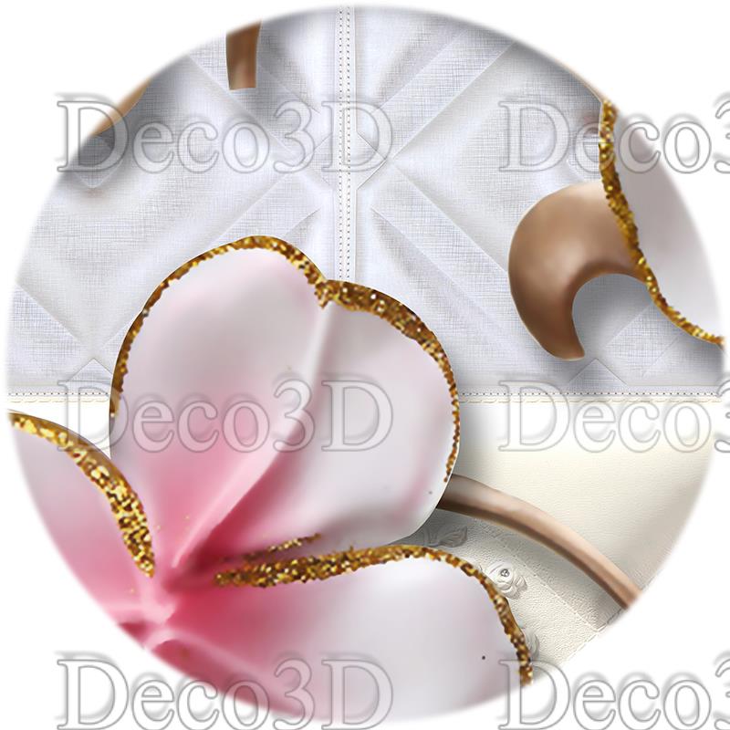 گل های سه بعدی صورتی و سفید با دایره های توخالی طلایی