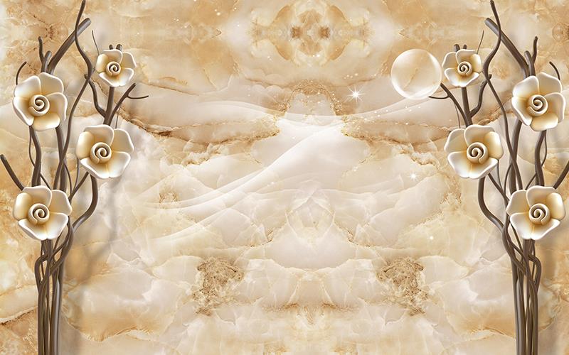 پروانه های آبی با گلهای سفید و پس زمینه سه بعدی