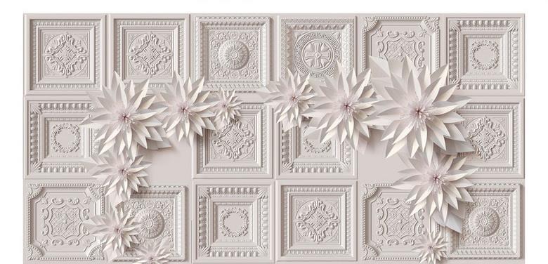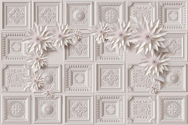 گلهای طرح لاتوس با زمینه کتیبه مربعی