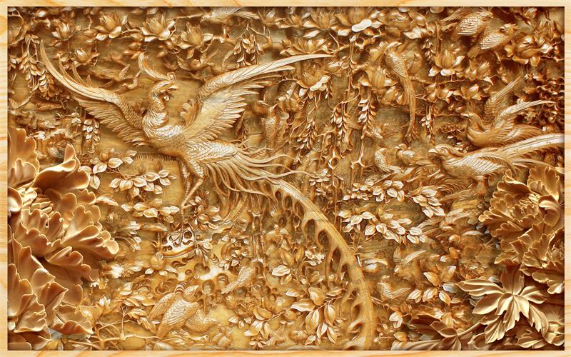 طرح هنری از دشت و درخت و پرندگان برجسته
