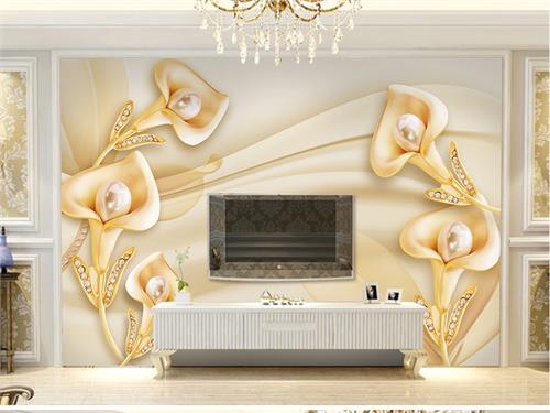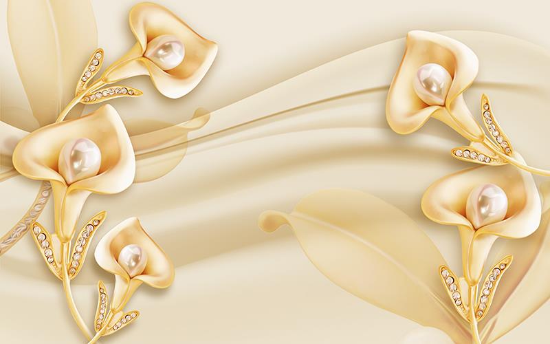 گلهای شیپوری طلایی نگین دار با زمینه ساتن