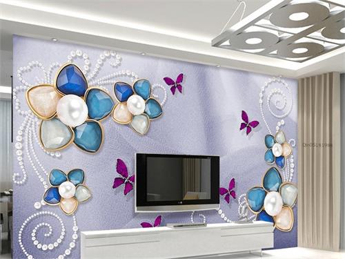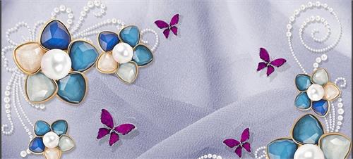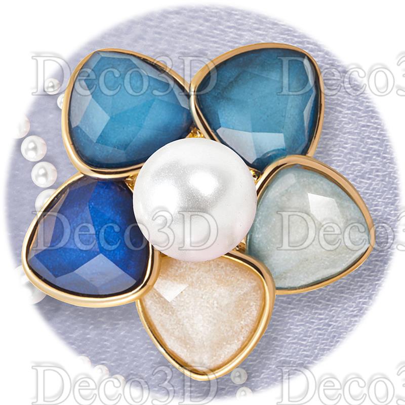 گلهای پنج پر نگین آبی با برگهای مروارید
