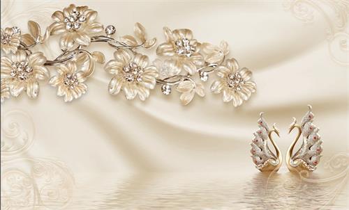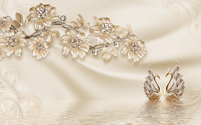 قوها و گلهای نقره ای با زمینه کرمی رنگ
