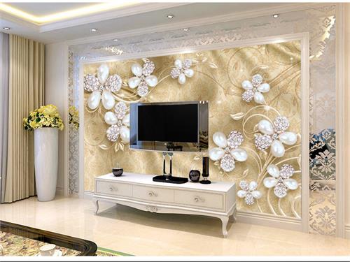 گل پنج پر نگین و مروارید با زمینه پارچه طرح دار