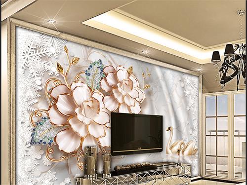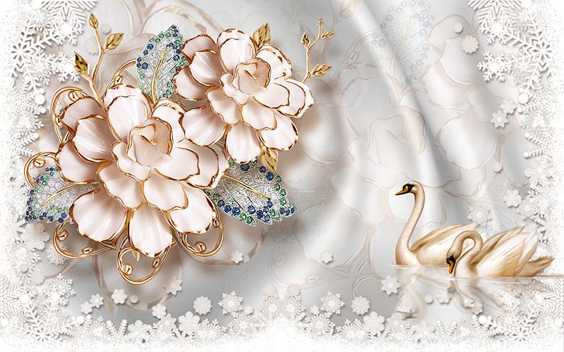گلهای درشت طلایی و برگهای نگین دار با حاشیه بلور برف