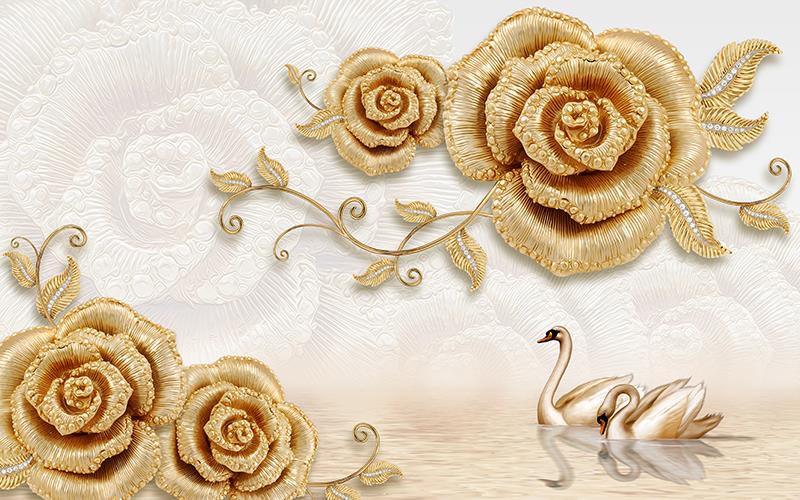 گل رز طلایی و قوها