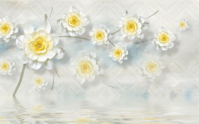 گلهای سفید نگین دار با برگهای فلورال طلایی