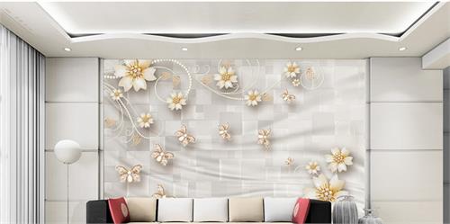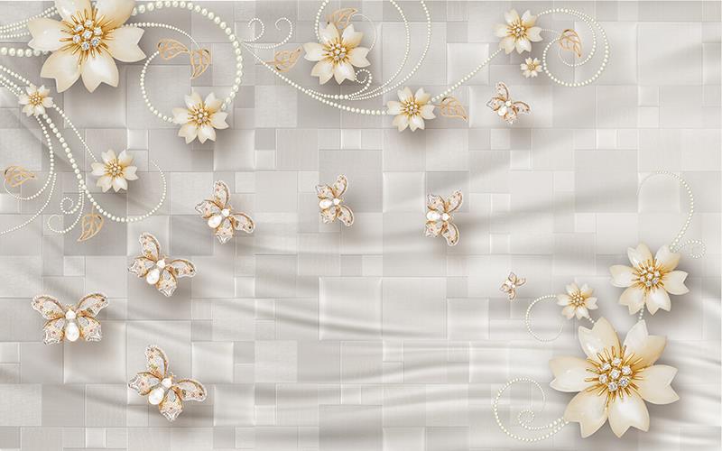 گلهای کرمی رنگ نگین دار با پروانه ها