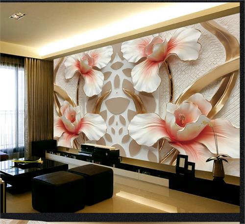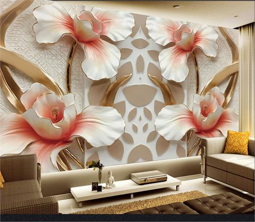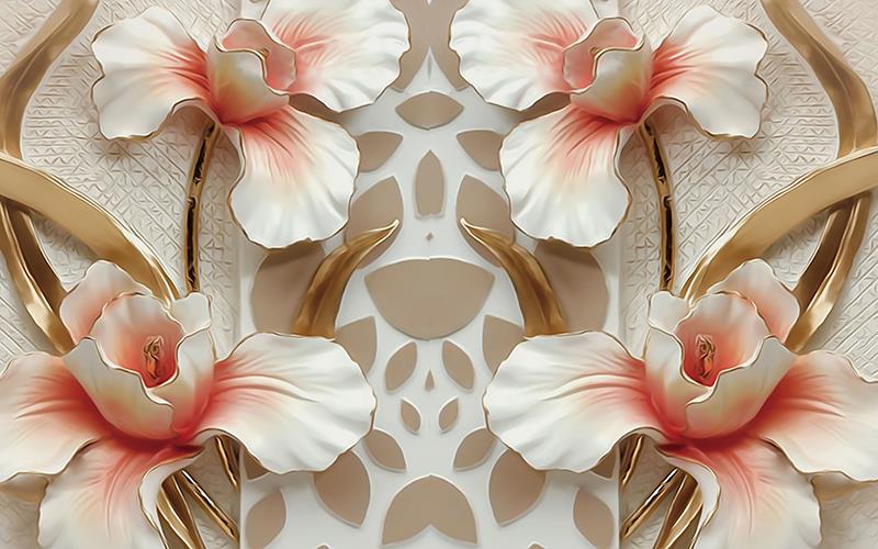 دیوار سنگی با طرح گلهای برجسته طلایی
