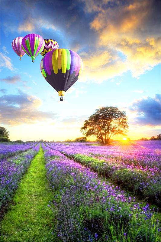 بالن های هوایی رنگارنگ بر فراز مزرعه