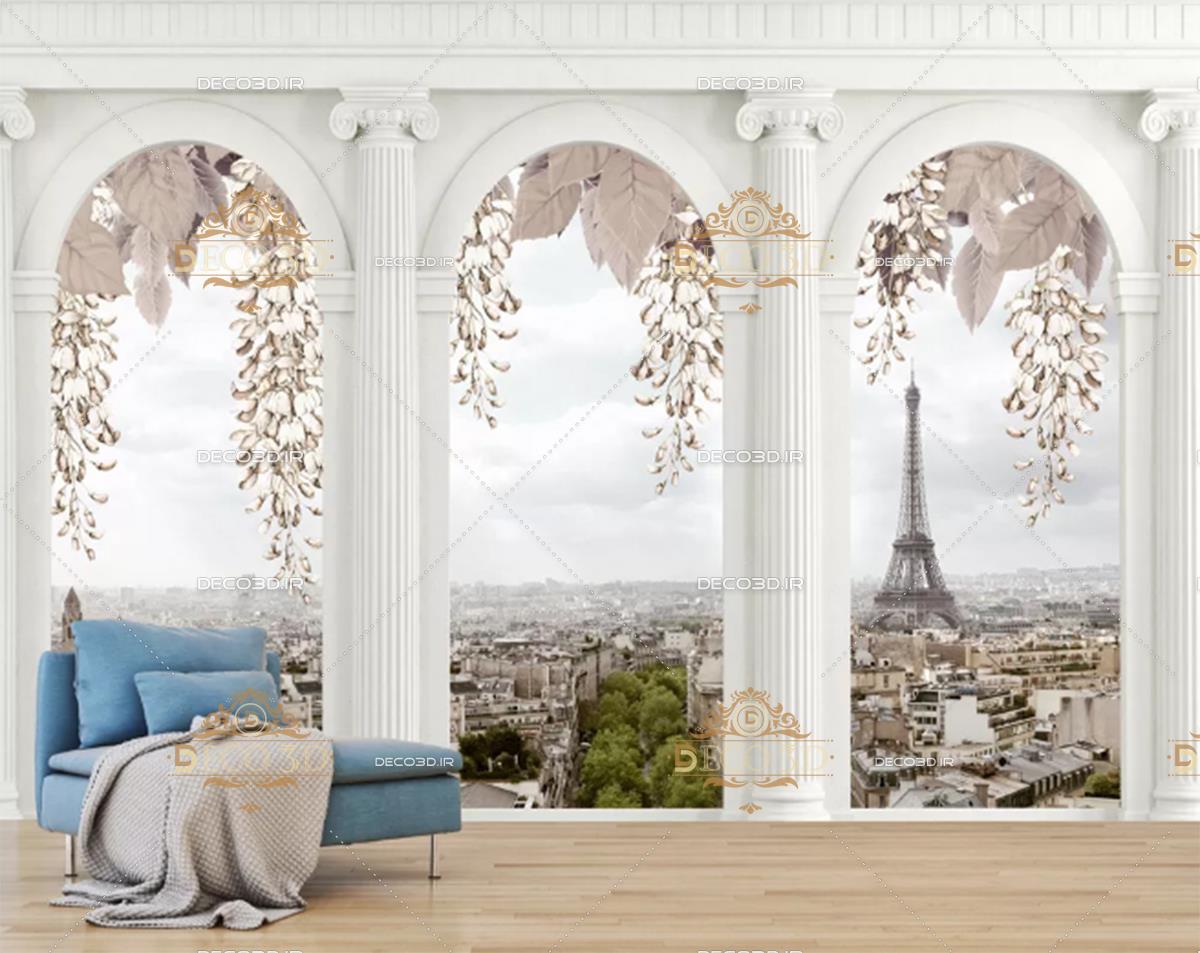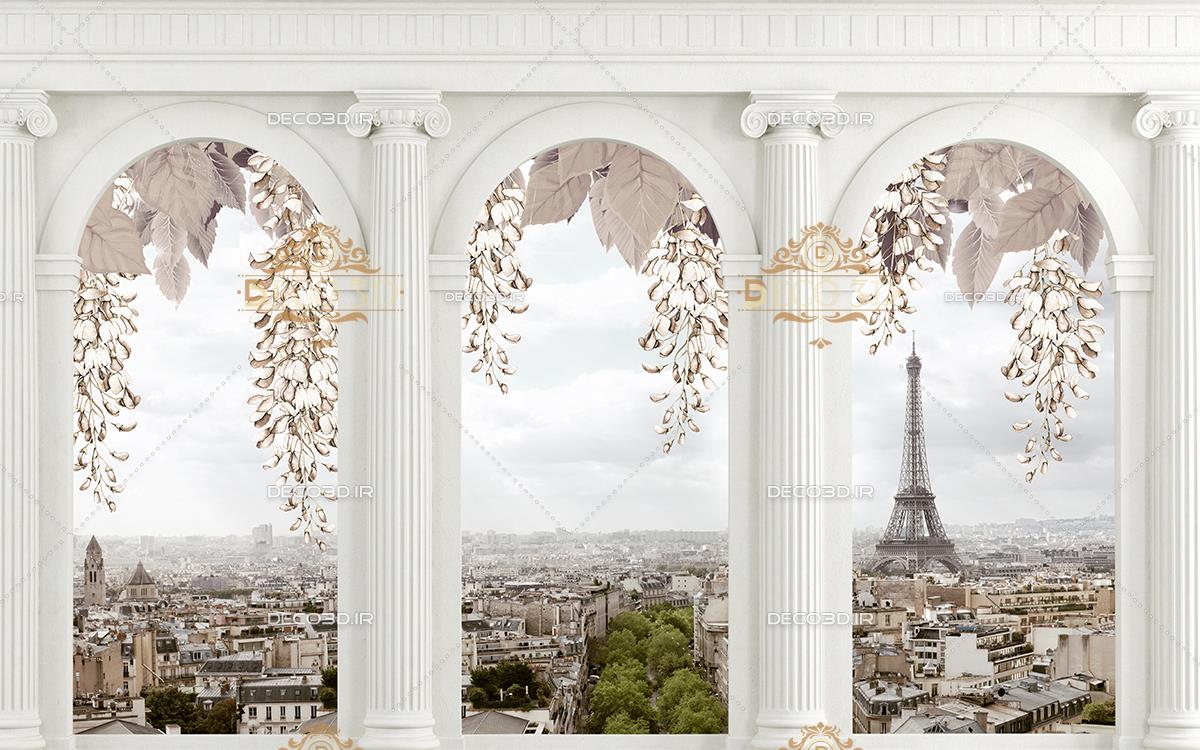 منظره شهر پاریس و برج ایفل از پشت پنجره