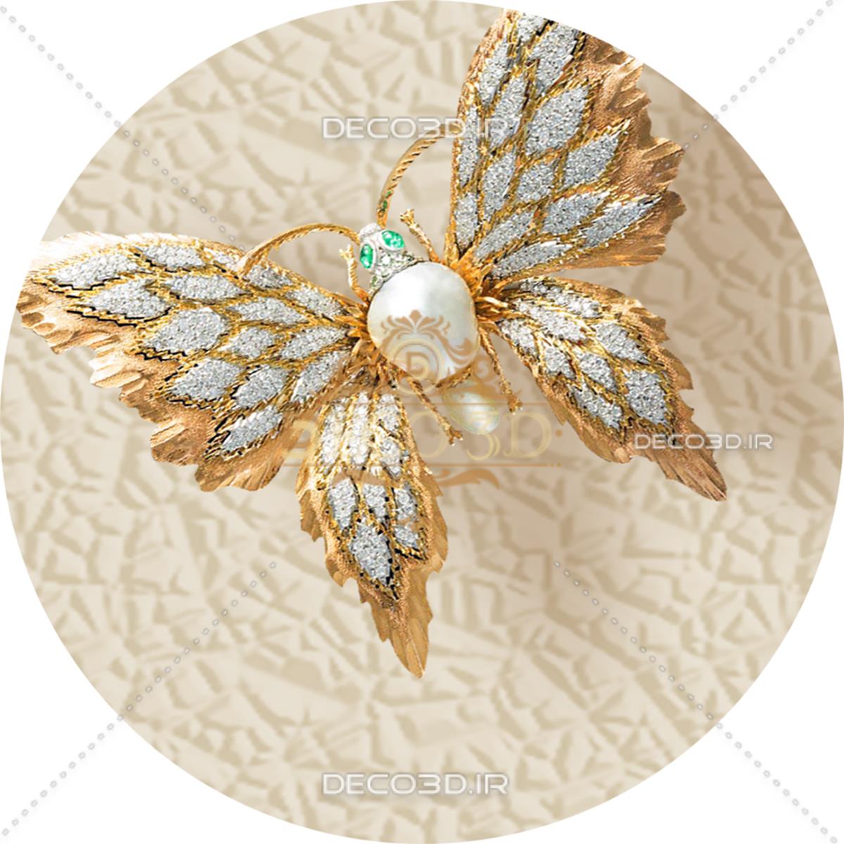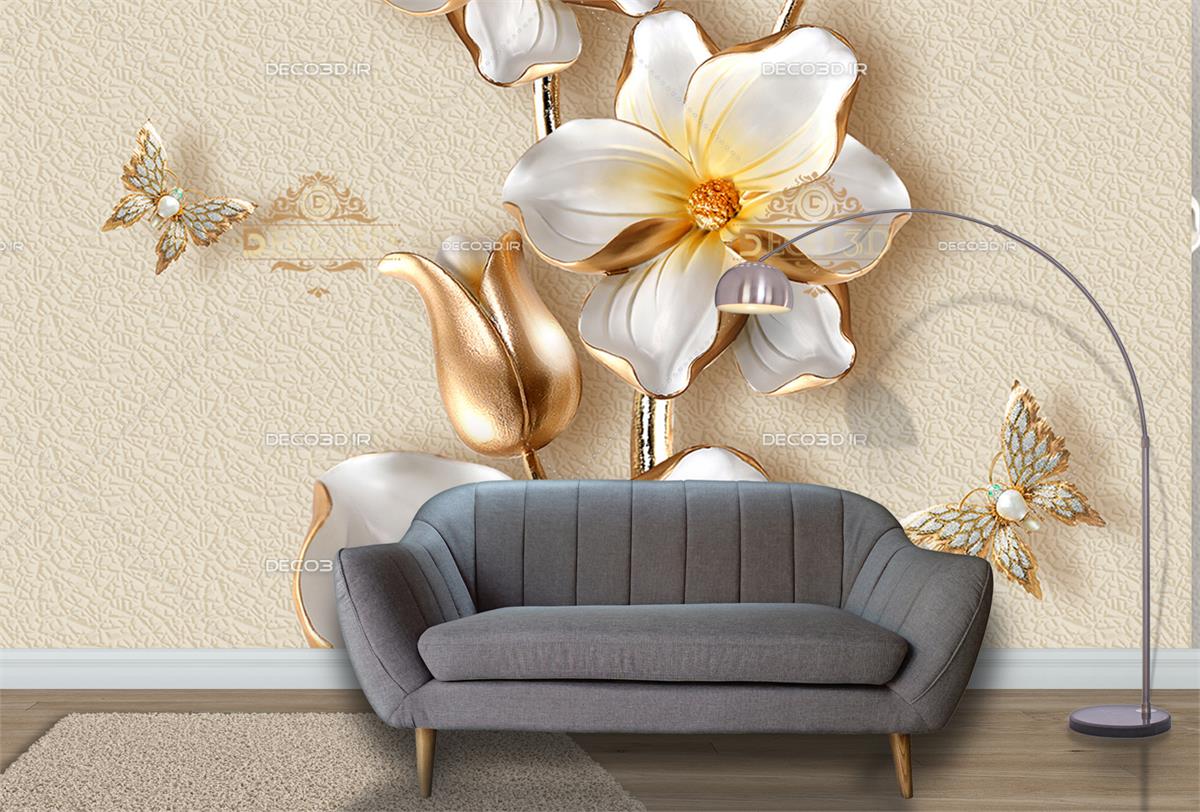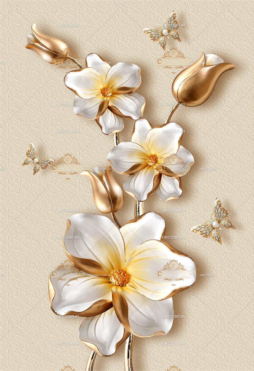 گل های سفید و پروانه های جواهری سه بعدی