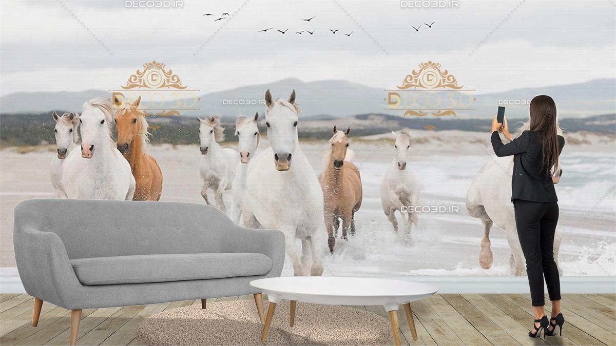 منظره اسب های وحشی در کنار دریا
