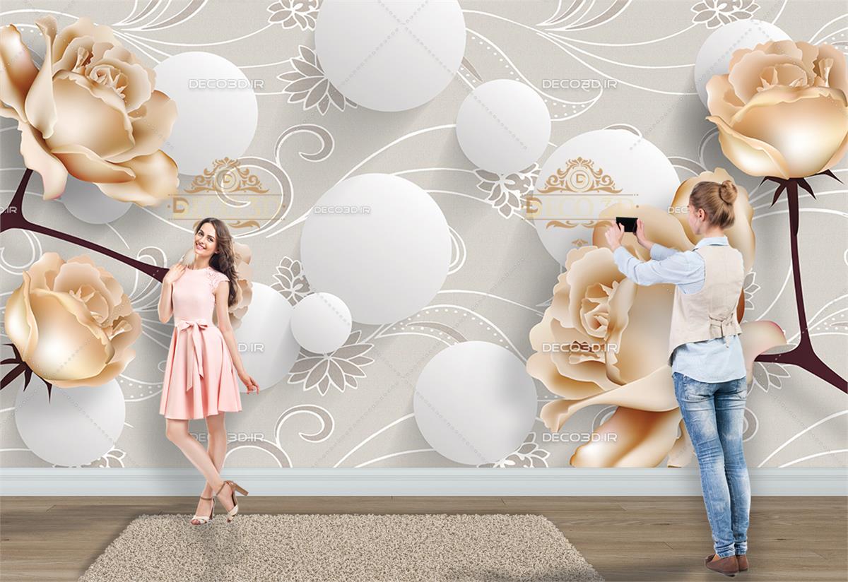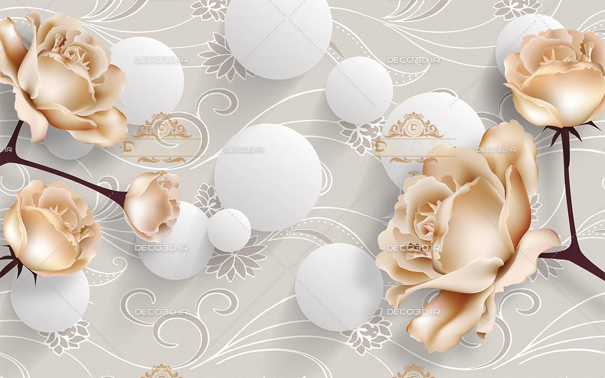 گل های رز کرمی سه بعدی با پترن شاخه و گل