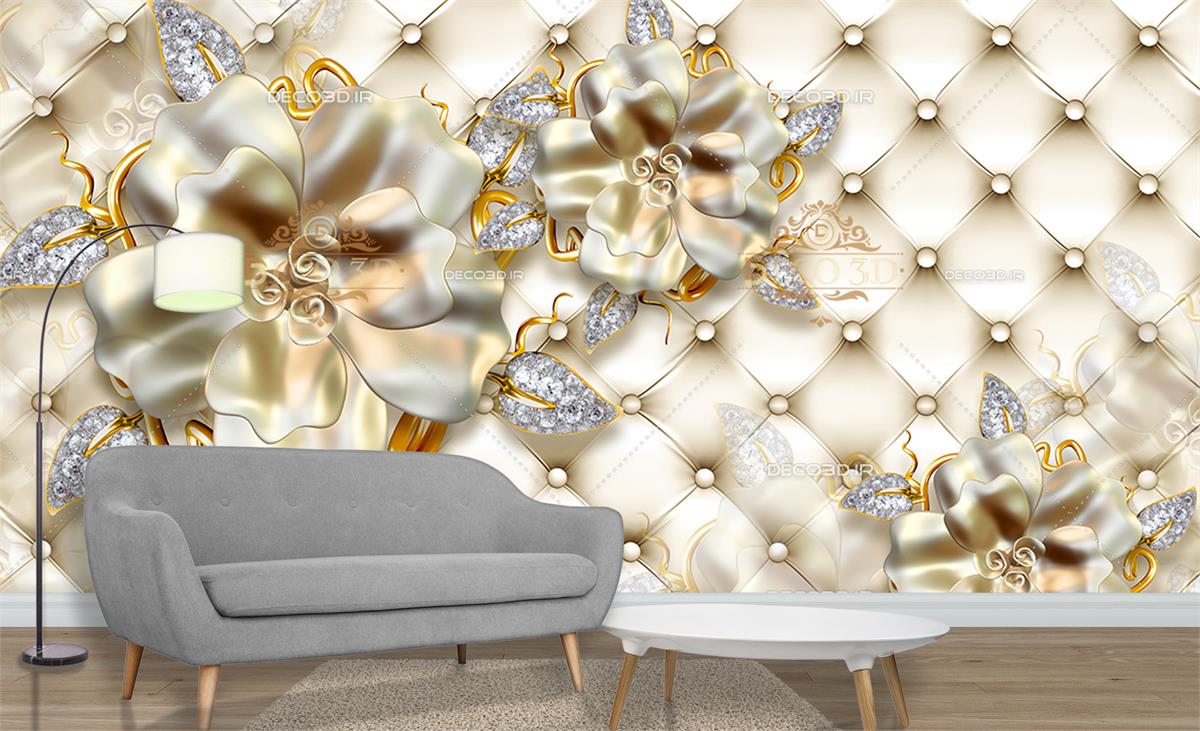 گلهای جواهرنشان سه بعدی با زمینه طرحدار کرمی