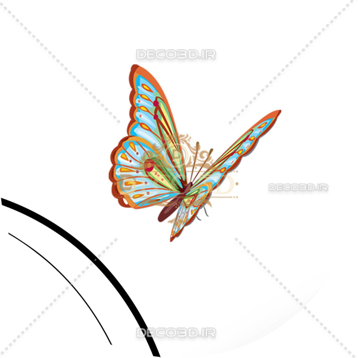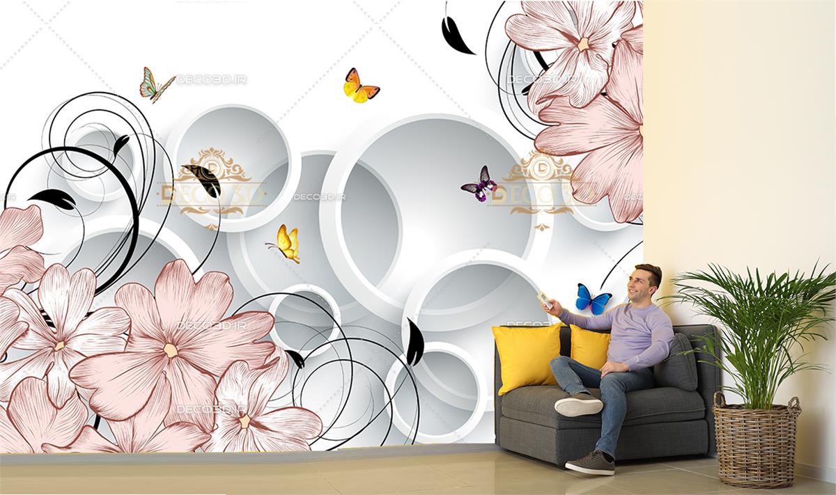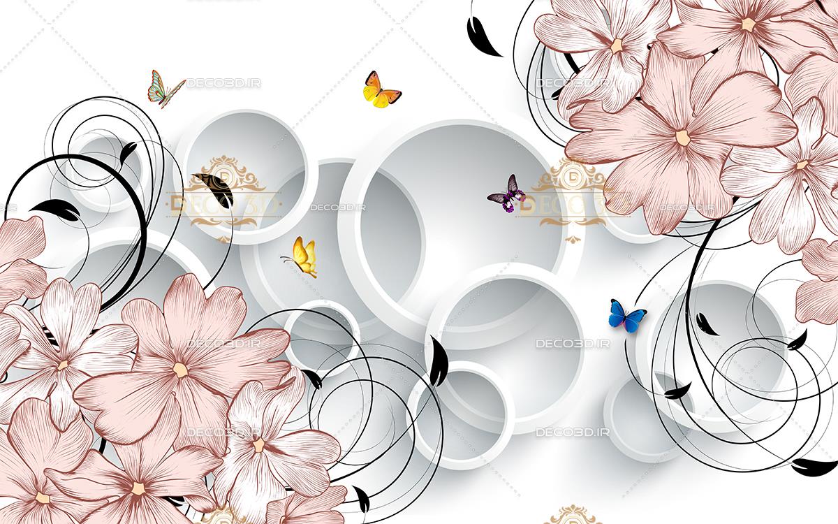 گل و پروانه ها با زمینه حلقه های سه بعدی