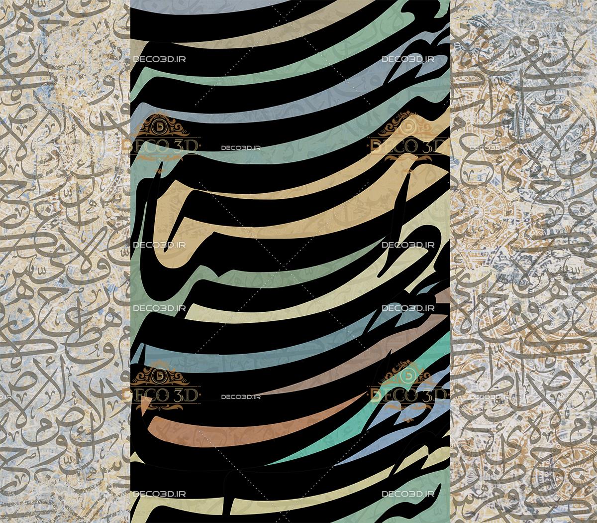 حروف انتزاعی با خط شکسته نستعلیق و زمینه پتینه شمسه