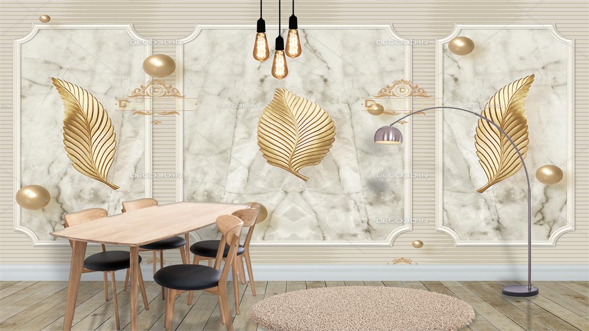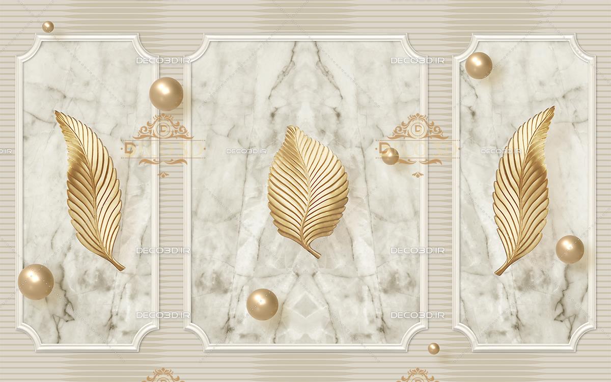 برگ و گوی های طلایی با زمینه قاب کاشی