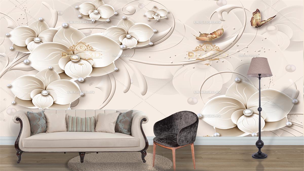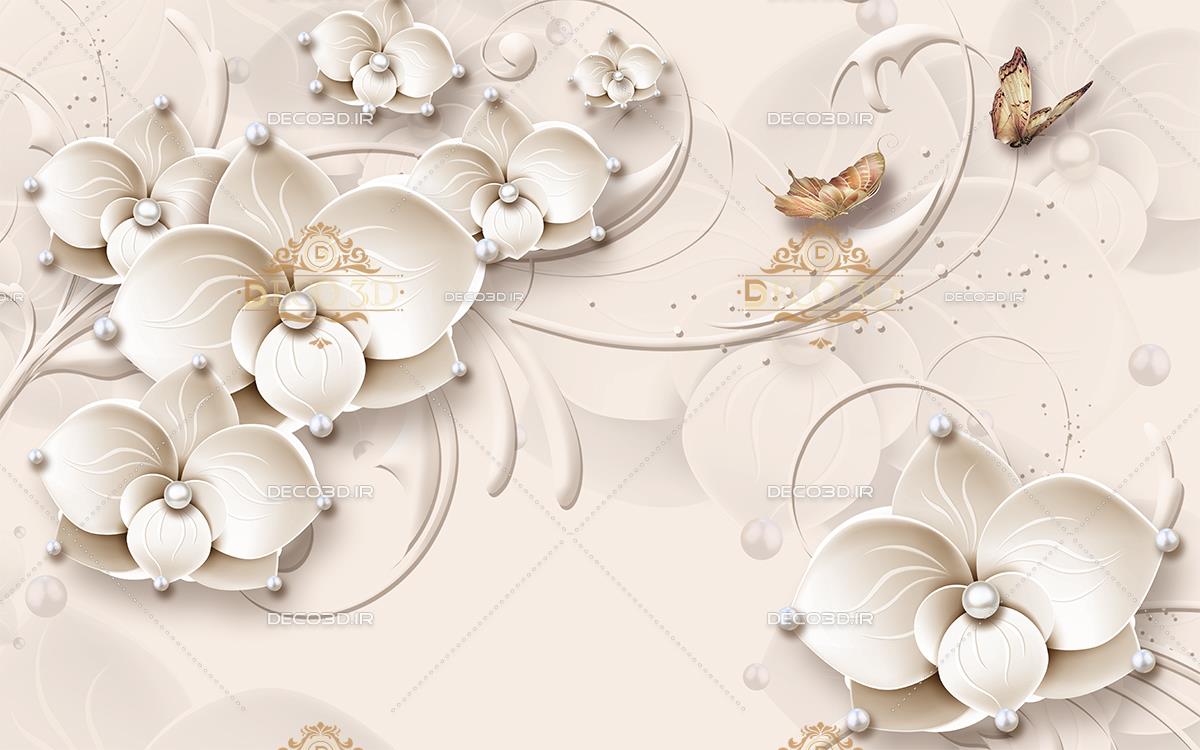 گل های برجسته با نگین های سفید