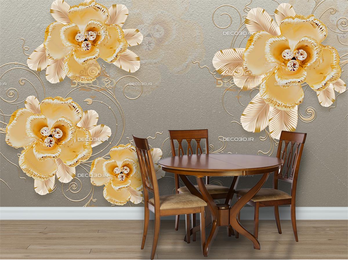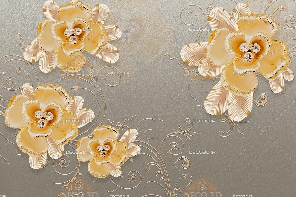 گلهای طلایی برجسته با سه نگین