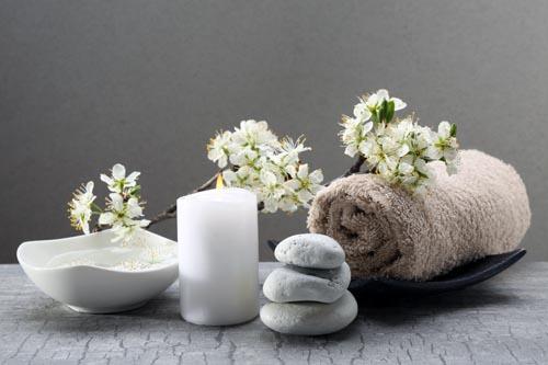 پس زمینه سه بعدی با مروارید و گلهای برجسته سفید و صورتی