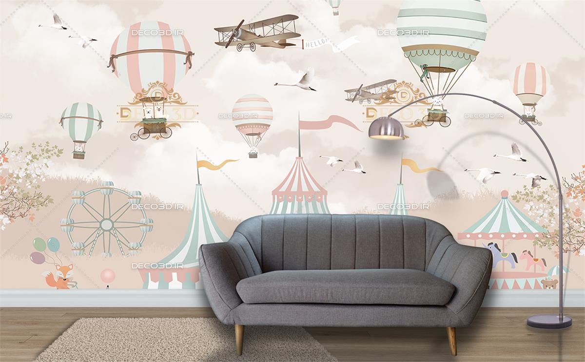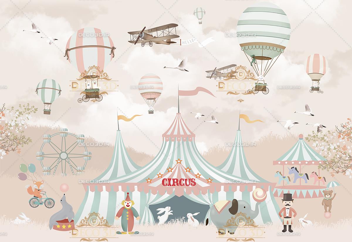 سیرک حیوانات و شهربازی و بالن ها بر فراز