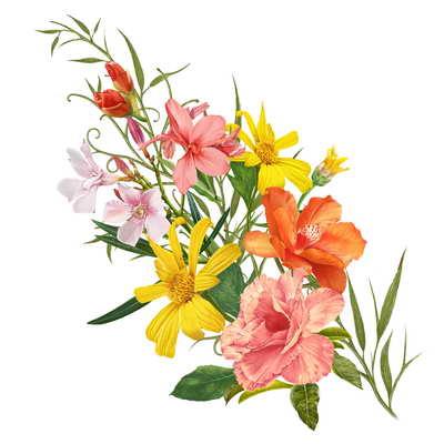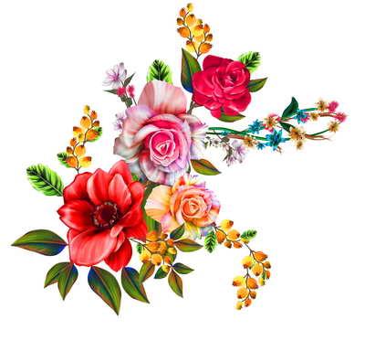 برگ ها و گل های آویزان