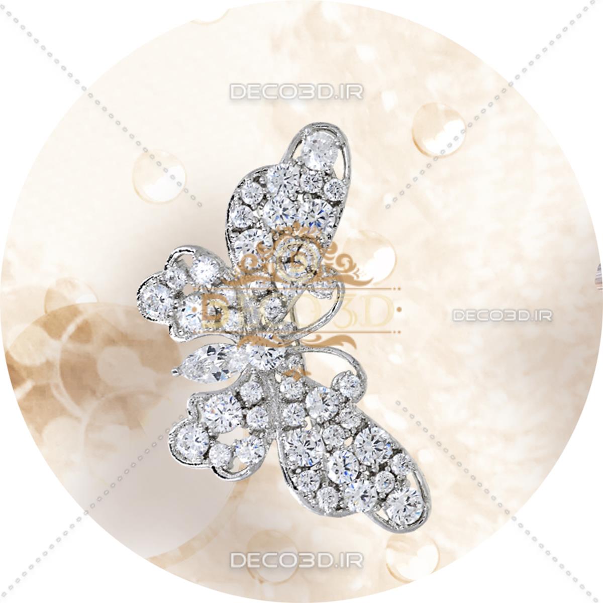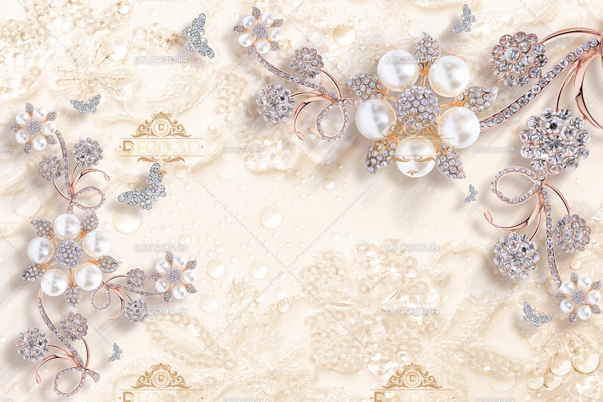 پس زمینه سفید با گل برجسته صورتی و گل طلایی نگین دار