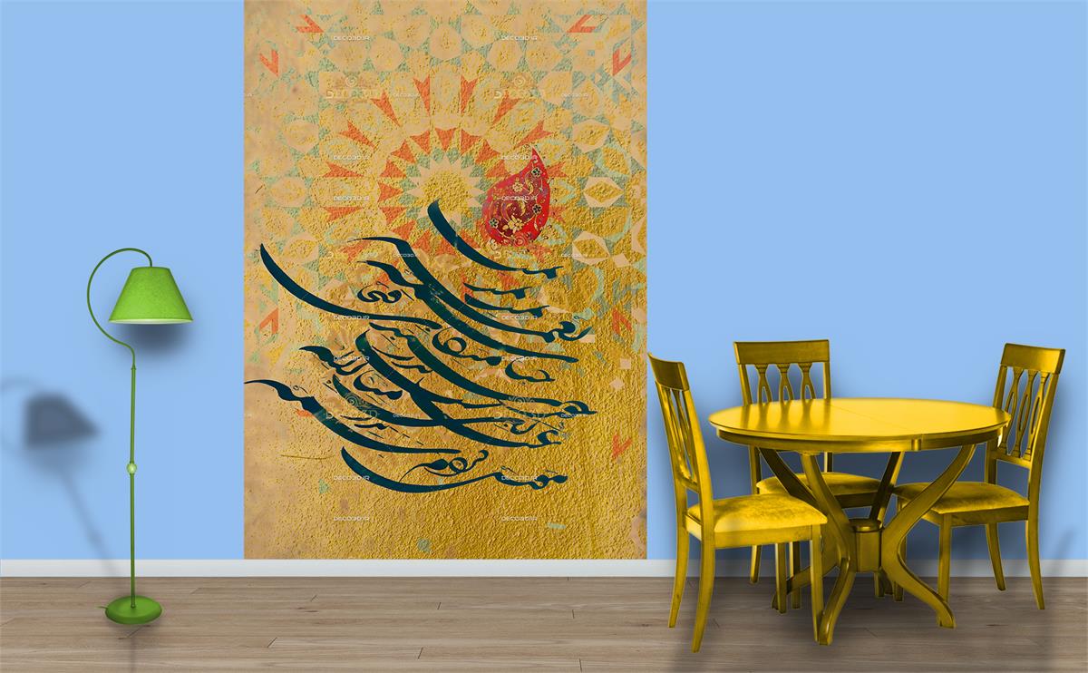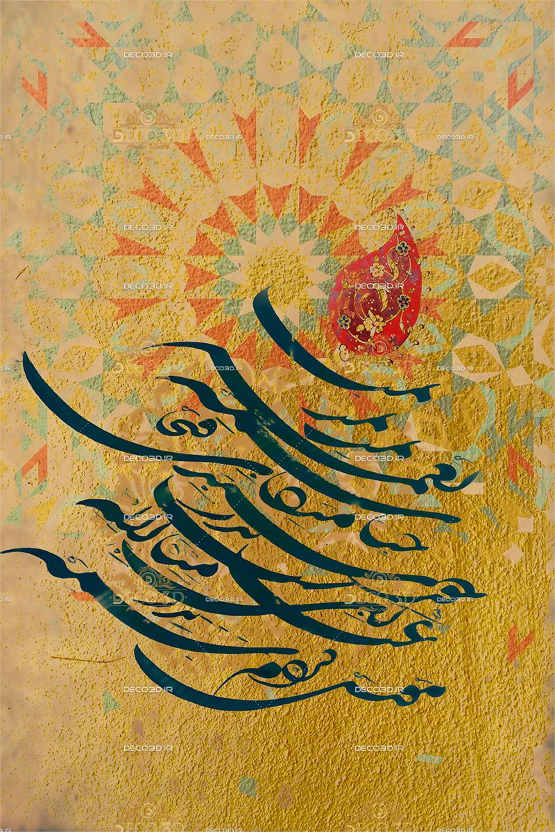کتیبه سیاه مشق چشمه خورشید با پترن اسلامی