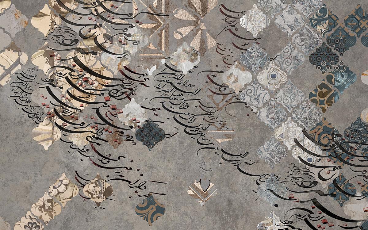 خطاطی با خط شکسته نستعلیق در زمینه پتینه قهوه ای
