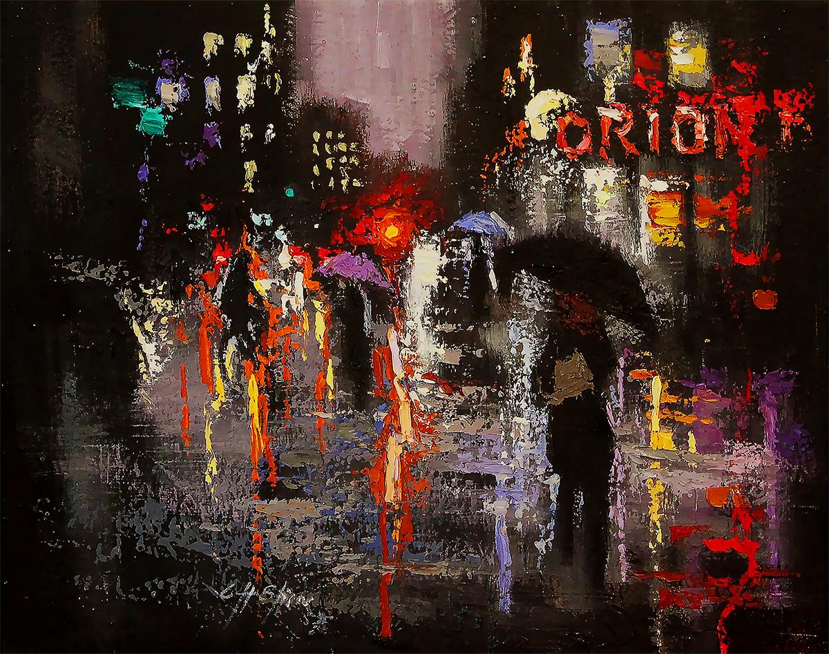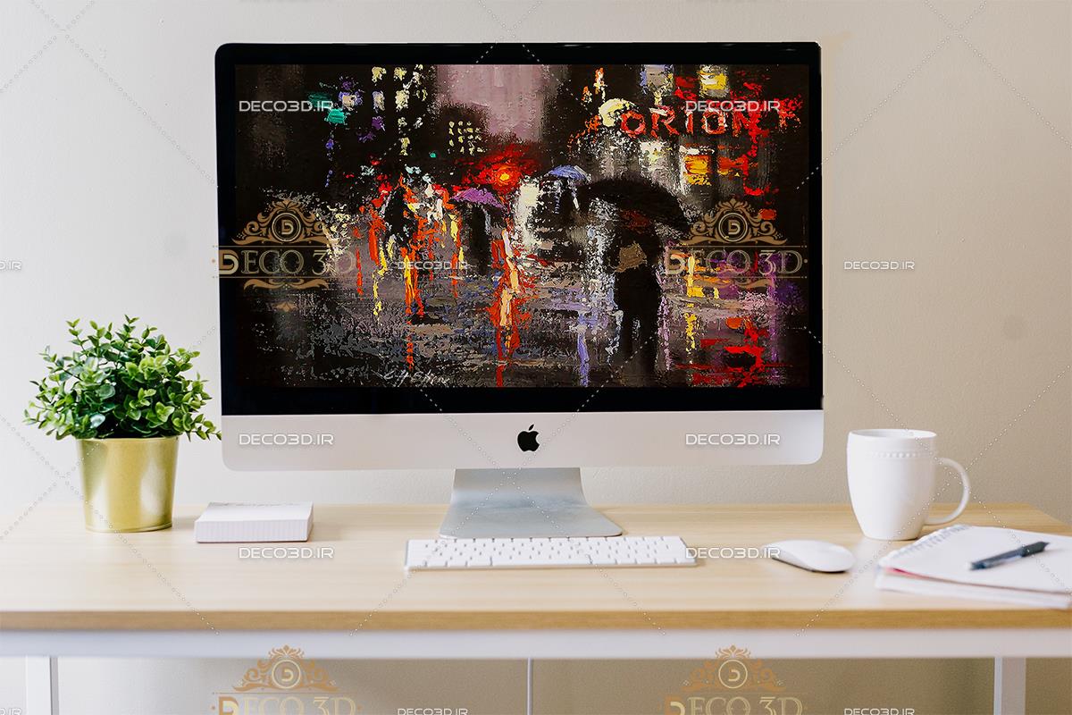 نقاشی دیجیتالی منظره بارانی شهر