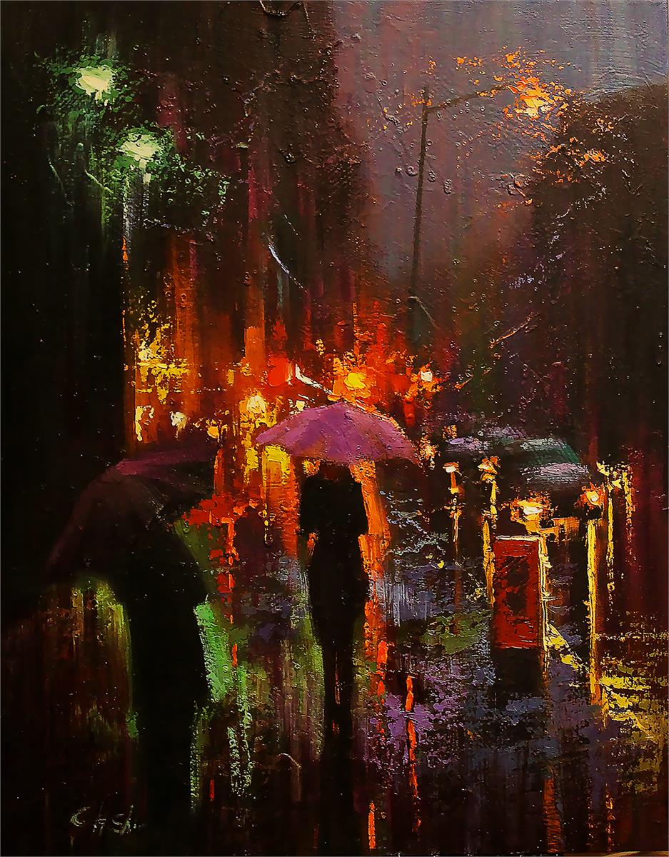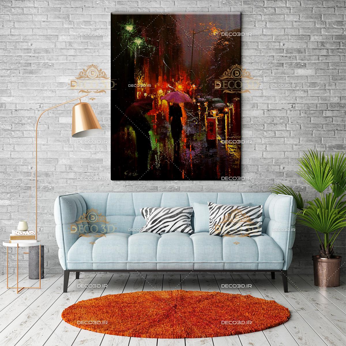 نقاشی دیجیتالی شب بارانی شهر