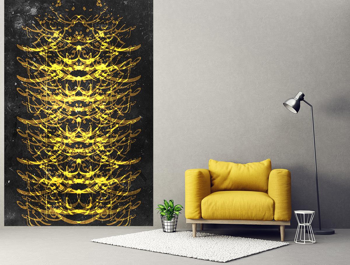 کتیبه خط قرینه طلایی صدای سخن عشق