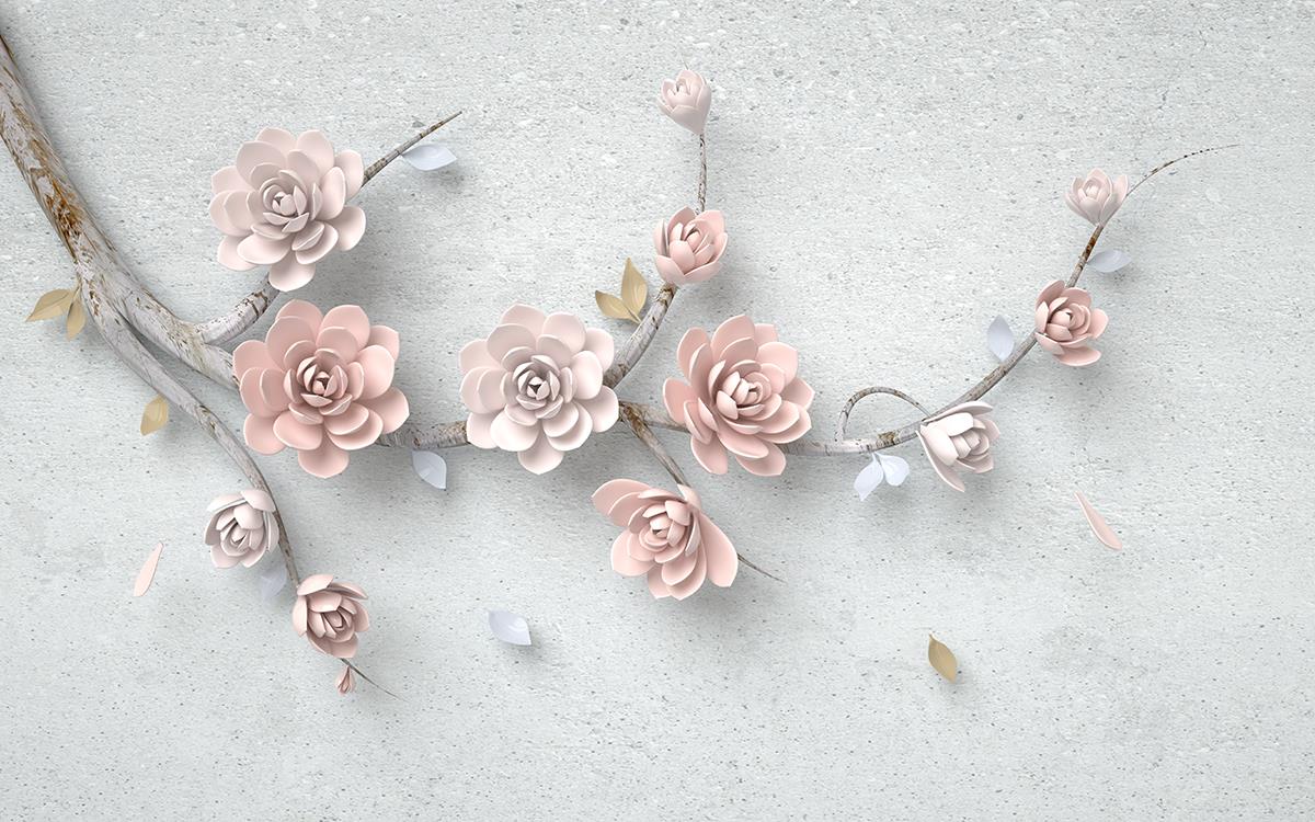 گلدان چینی با گلهای سفید و برگهای طلایی