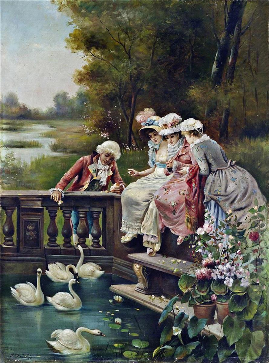 نقاشی غربی خاص با تکنیک فلز برجسته(زوج عاشق و سگ)