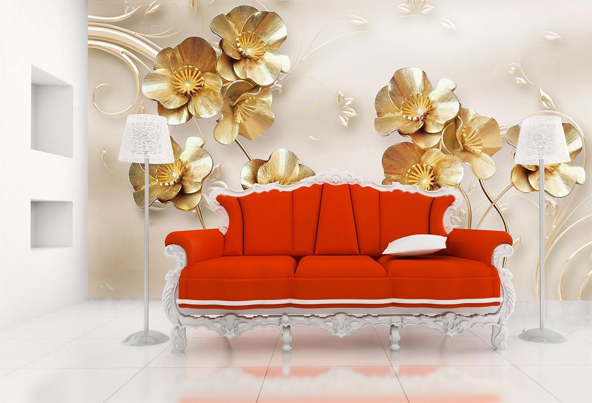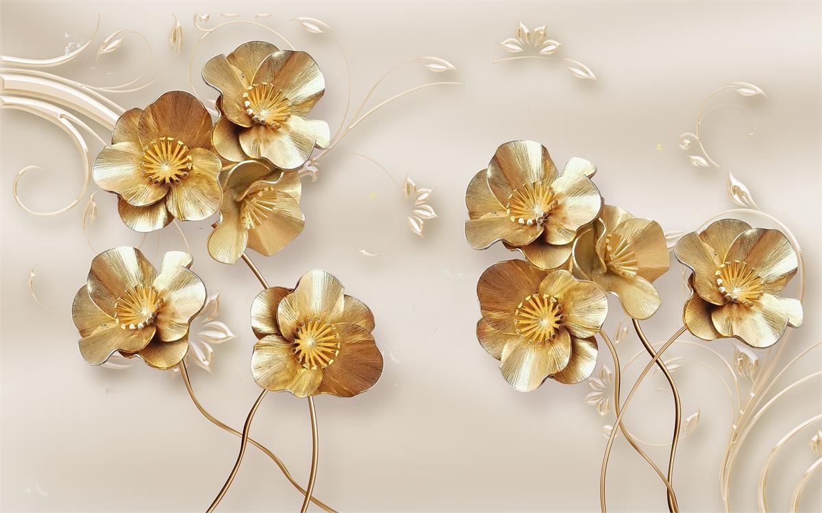 نقش گلهای طلایی با زمینه طرح دار قهوه ای