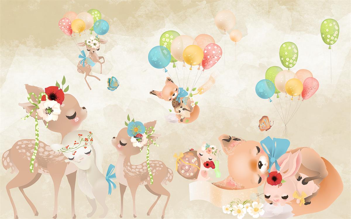 طرح ساده کودکانه از درخت و حیوانات