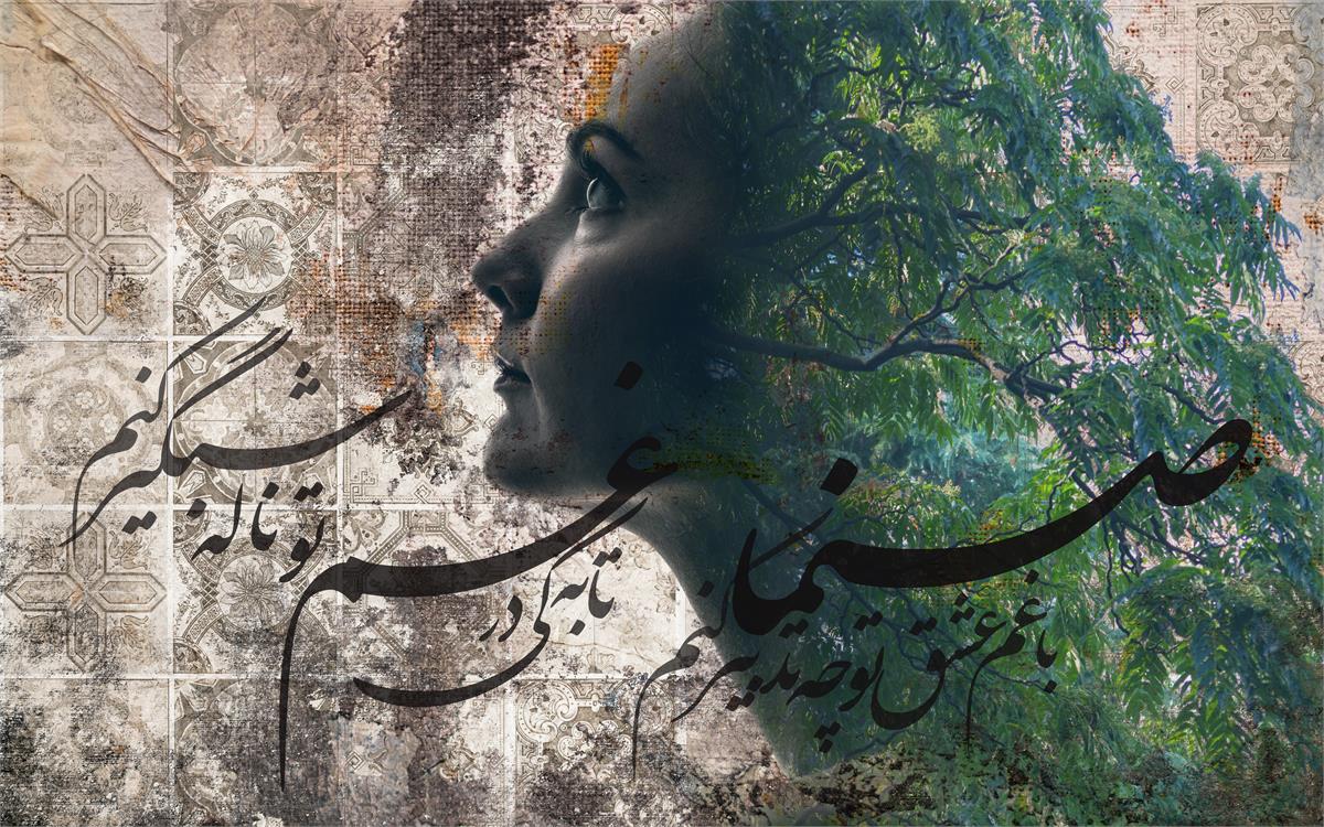 خطاطی با خط شکسته نستعلیق در زمینه پتینه قهوه ای